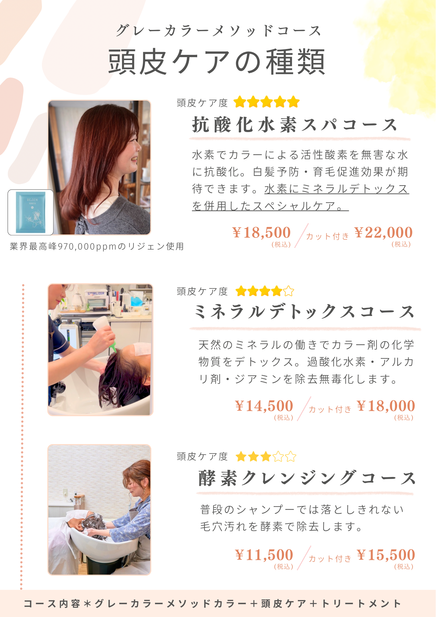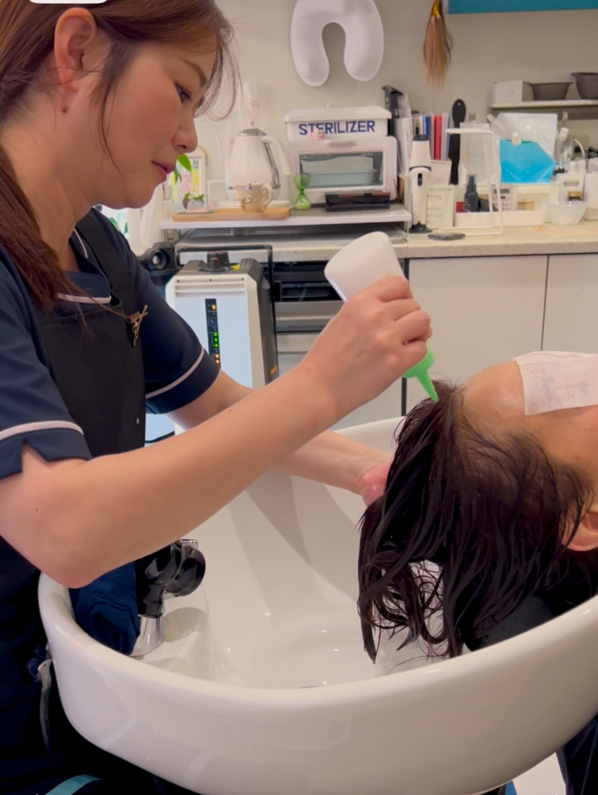 当店のグレーカラーメソッドのコースはヘッドスパ付きなので、